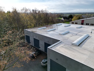 The warehouse is solidly constructed with concrete panels and a floor thickness of 15 cm, fitted with double mesh reinforcement, ensuring a robust and durable structure. Thanks to the smart architecture and the presence of skylights, there is plenty of natural light, which significantly increases working comfort.