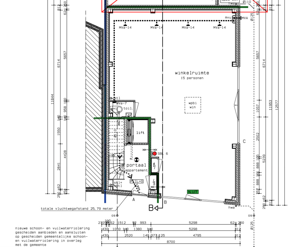 Het pand zal een frontbreedte krijgen van circa 5,30 meter en een diepte van circa 11 meter. De commerciële ruimte zal bestaan uit een gebruiksoppervlakte van circa 79 vierkante meter waarbij de gehele ruimte op de begane grond zal zijn. Naast een grote ruimte die vrij kan worden ingedeeld wordt er een afvoer voorzien voor een toilet. Het geheel zal worden opgeleverd in casco staat ( wind- en waterdicht, constructievloer, geen installaties).