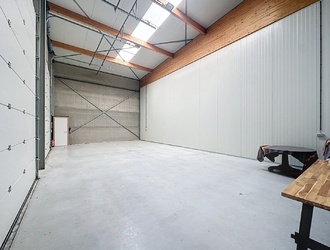 Binnen is de unit uitgerust met plafond-ledverlichting en stopcontacten langs de muren, wat de ruimte direct gebruiksklaar maakt. De geïsoleerde gevel- en dakpanelen zorgen voor een prettig werkklimaat. De gepolierde betonvloer is slijtvast en onderhoudsvriendelijk. Buiten treft u een volledig verhard terrein met buitenverlichting, aangestuurd via een astroklok.